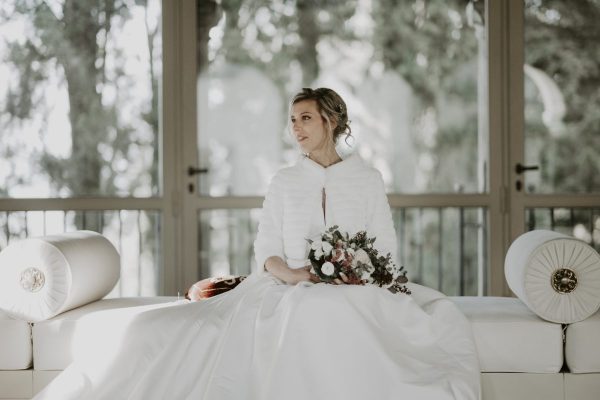 Allo stesso modo anche l’allestimento dell’Antica Fattoria di Paterno – la bellissima location scelta per il ricevimento – racchiudeva tutti gli elementi del fil rouge scelto. Un vero tripudio di nuance eleganti tipiche del periodo delle feste come l’argento, il verde e il bronzo.