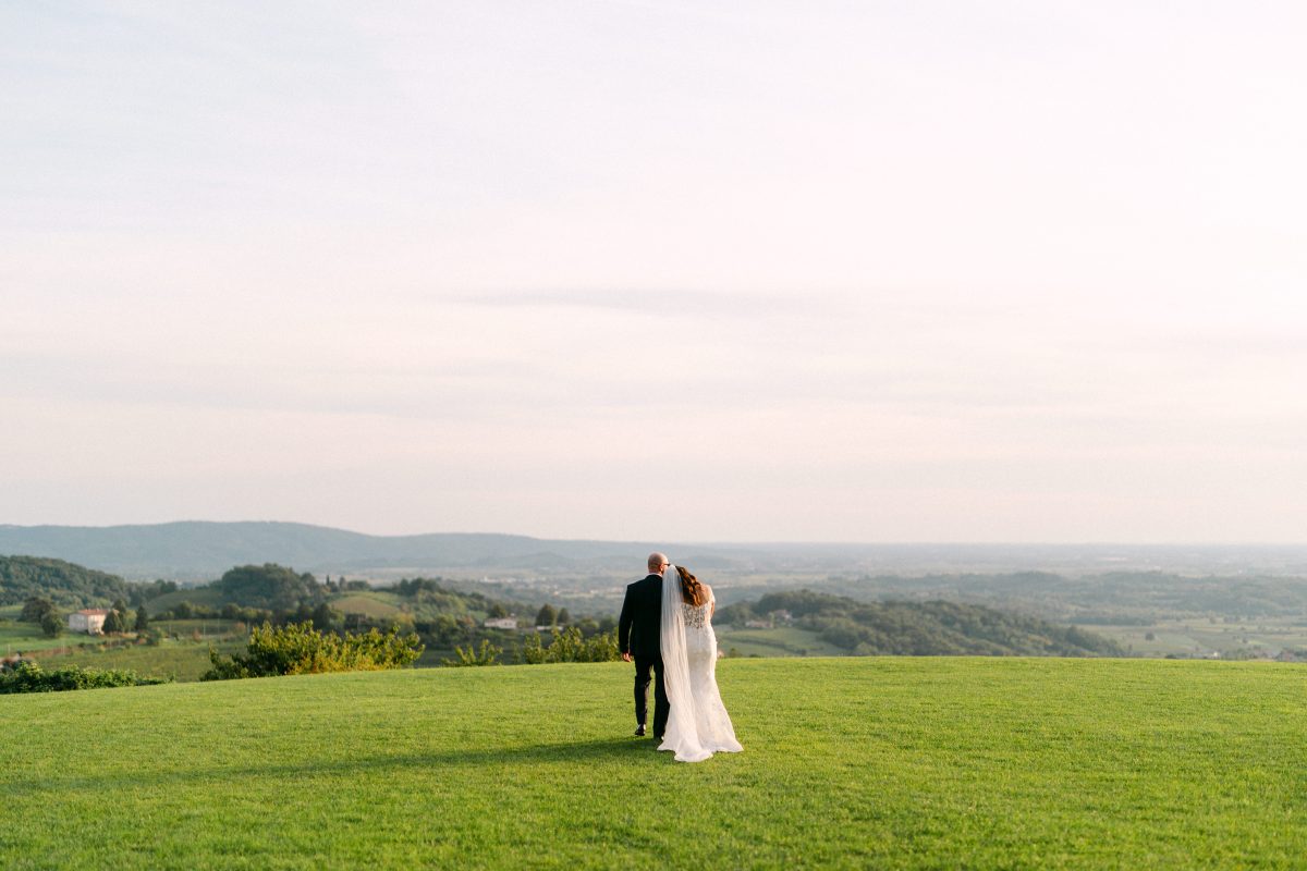 Un matrimonio elegante tra le colline italiane, con vista mozzafiato. Nemmeno la pioggia ha fermato l’atmosfera di festa, culminata in un party esclusivo che ha illuminato la notte.