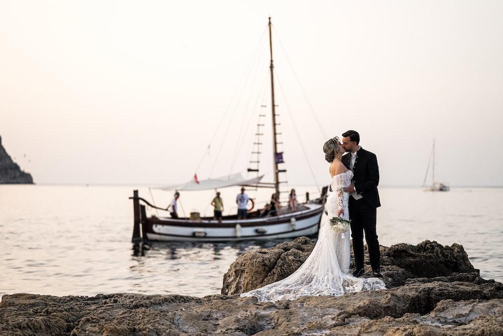 Tra il mare che si perde all’orizzonte, le barche che ondeggiano leggere e un tramonto che accarezza ogni istante, prende forma un matrimonio sospeso nel tempo.