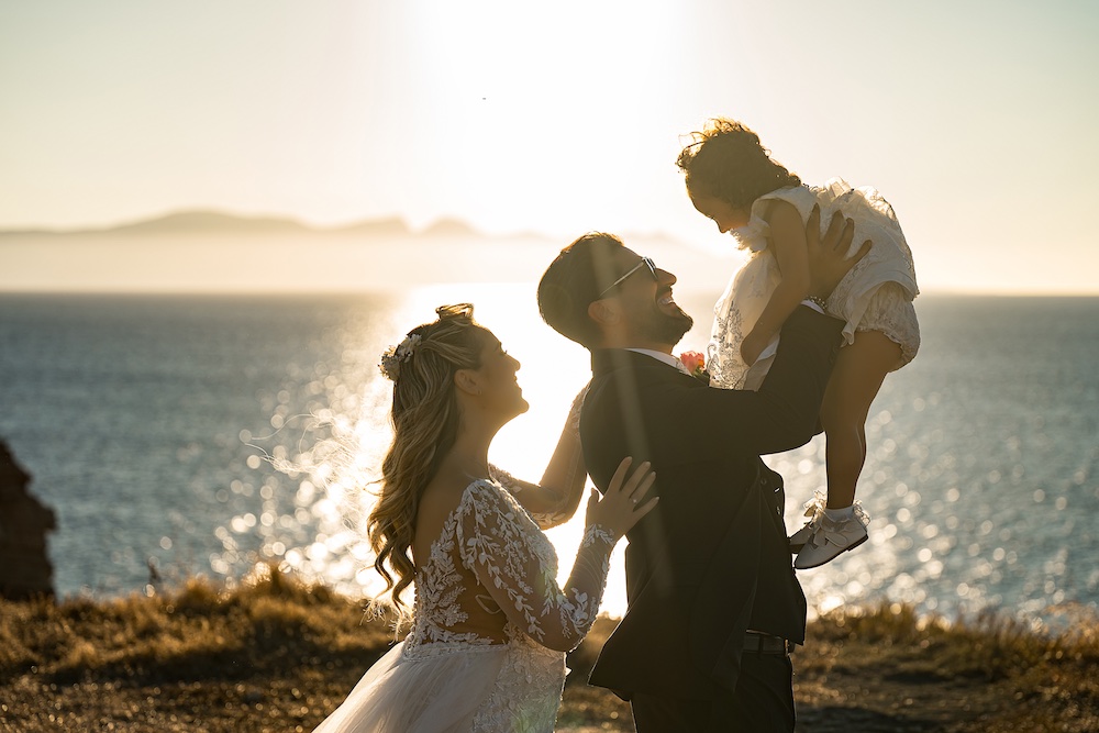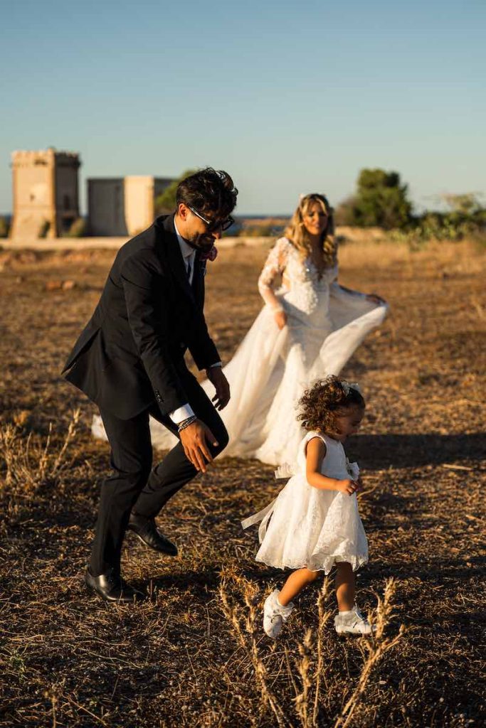 Si sono detti Sì guardandosi negli occhi, mentre il loro amore prende forma anche nello sguardo della figlia. Un matrimonio che è anche una promessa condivisa, intima e profonda.