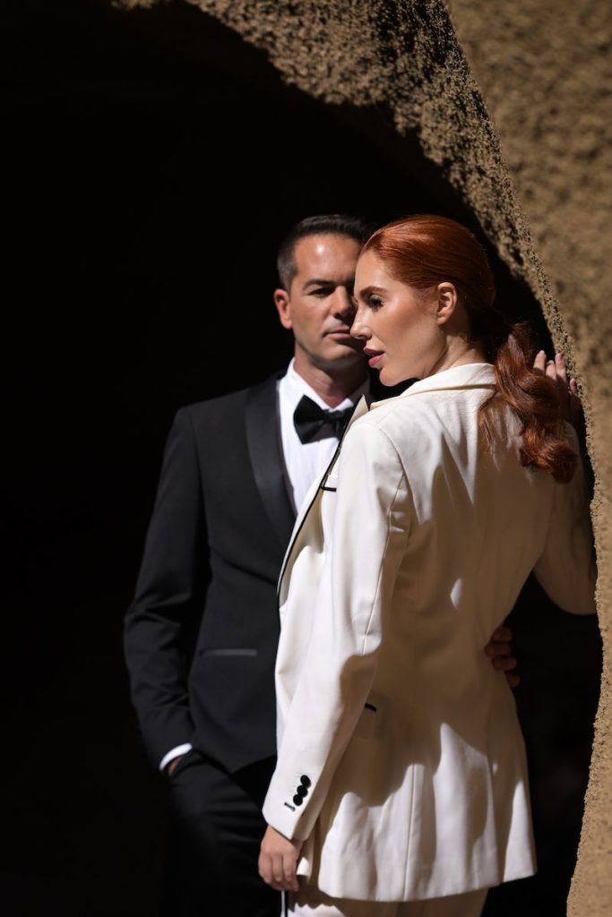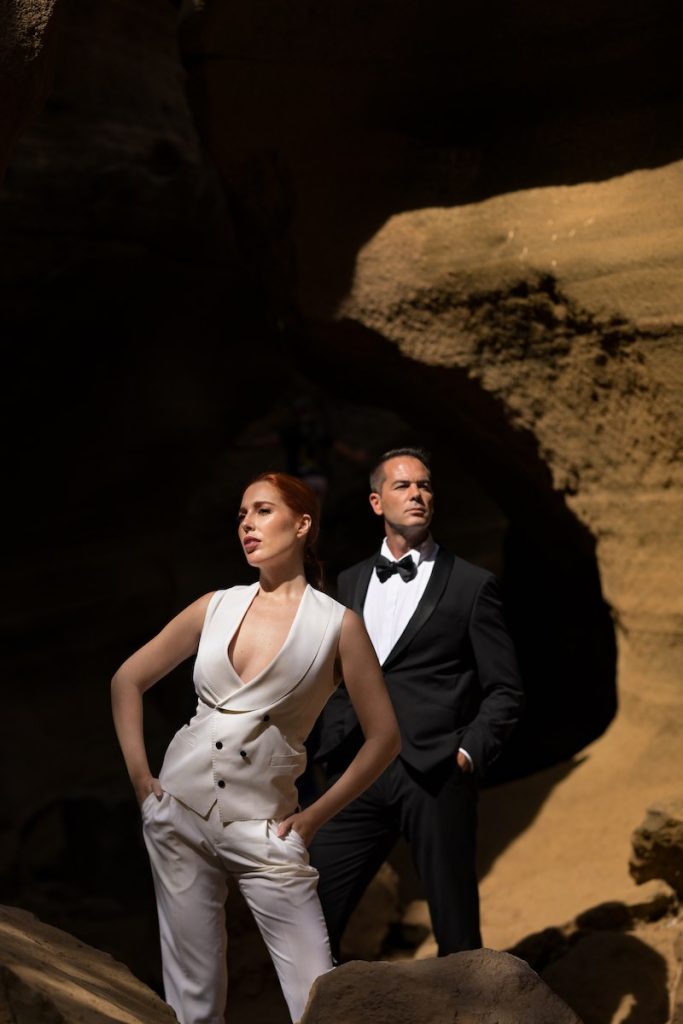 Tra i canyon selvaggi delle Canarie prende vita una visione contemporanea della sposa. Linee pulite, energia decisa, carattere. Il tailleur diventa simbolo di un amore moderno: essenziale e audace.