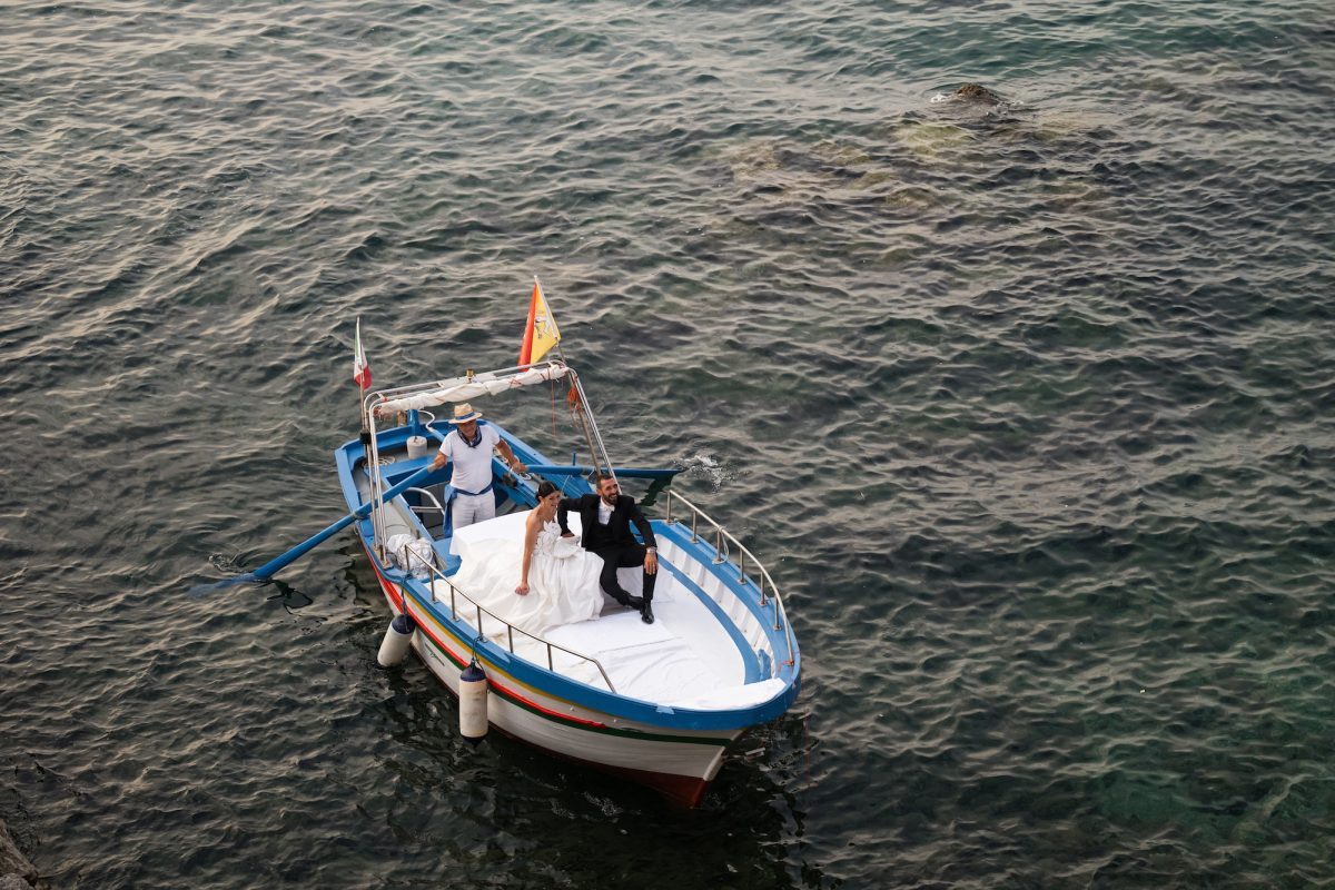 Tra il mare che si perde all’orizzonte, le barche che ondeggiano leggere e un tramonto che accarezza ogni istante, prende forma un matrimonio sospeso nel tempo.