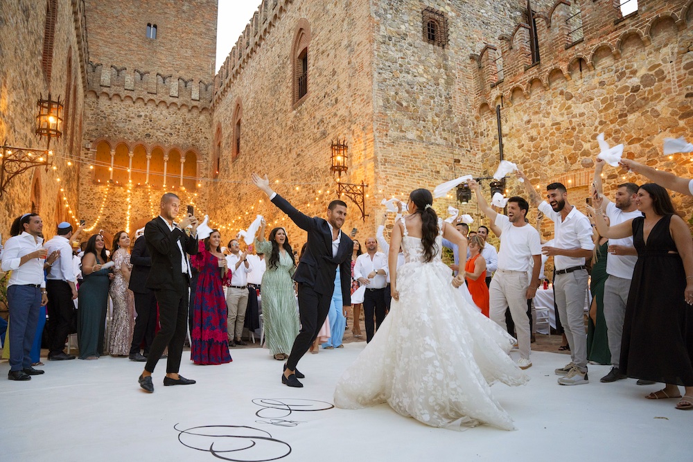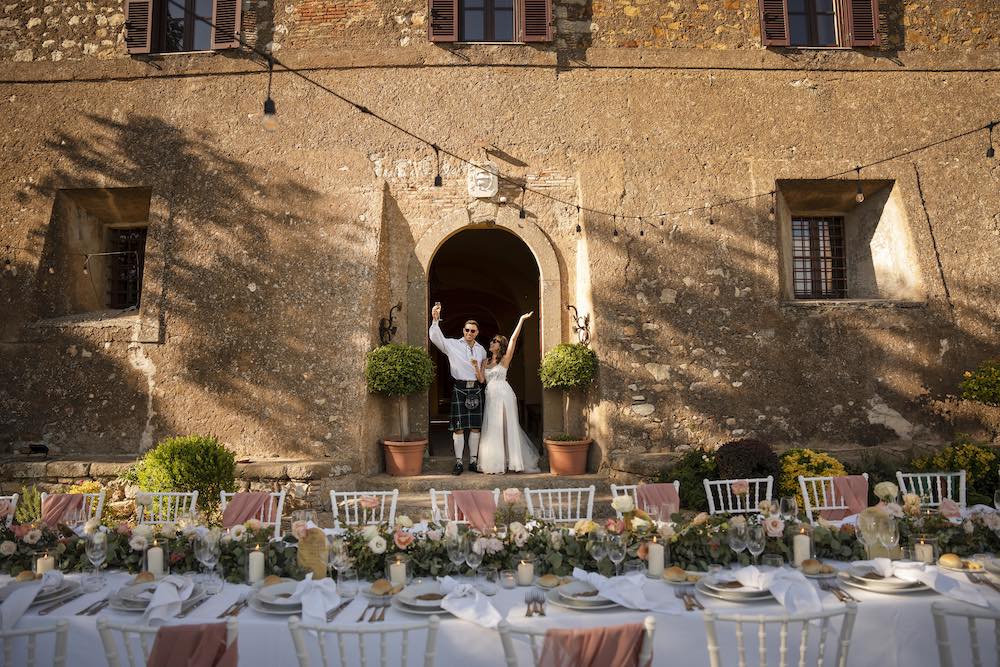 Al Castello del Sasso, tra mura antiche e paesaggi che guardano lontano, Luke e Kathy celebrano un matrimonio dal fascino internazionale. Lui, in abito scozzese con il kilt, porta una nota di tradizione e personalità. La giornata si riempie di eleganza, emozione e atmosfere intense, sospese tra storia e amore.