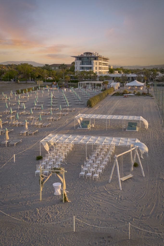 Il resort, infatti, è prima di tutto un luogo di accoglienza sul mare, capace di trasformarsi in wedding venue mantenendo comfort, eleganza e funzionalità.