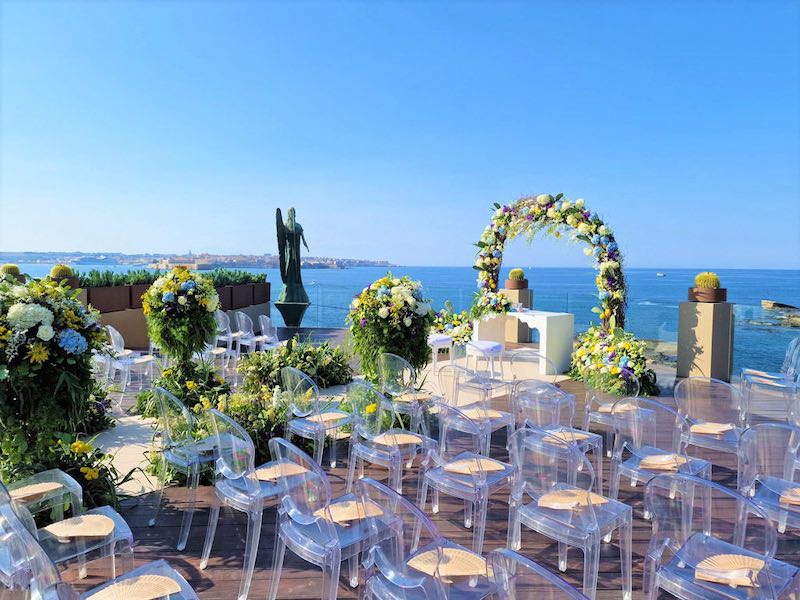 Resort esclusivo, affacciato direttamente sulla riserva marina del Plemmirio, il Minareato gode di ampi e suggestivi spazi esterni che si snodano tra terrazze sul mare, giardini mediterranei e una straordinaria spiaggia privata. Un contesto scenografico che si presta a matrimoni raffinati e dall’atmosfera d’altri tempi, con Siracusa a fare da spettacolare sfondo.