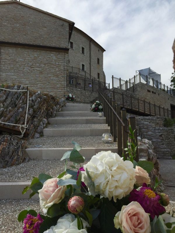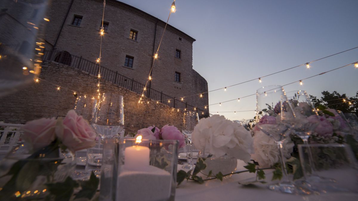 La terrazza del Castello di Naro a Cagli allestita per un matrimonio