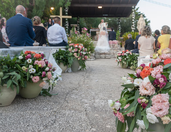 Marta e Giuseppe si sono giurati amore eterno all’imbrunire, in un giardino rigoglioso, reso ancora più ricco dagli allestimenti scelti per il luogo della celebrazione, mentre sullo sfondo impera il blu dello splendido mare trapanese. Una cornice romantica e bucolica allo stesso tempo.