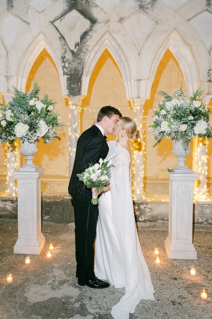 Lo scorso dicembre, Andrew e Lucy hanno scelto la magia di Amalfi per suggellare il loro amore con un intimo Elopement Wedding. Il sogno di Lucy era una piccola cerimonia simbolica lontano da tutto, per poi trascorrere la luna di miele nel Bel Paese. Per l’organizzazione della loro fuga d’amore, i due sposi si sono affidati a Laura Bini, founder di L’aura Bianca & Lov’elope. La cerimonia si è svolta nel chiostro dell’iconico Anantara Convento di Amalfi Grand Hotel, antico monastero del XIII secolo. Lucy ed Andrew hanno scelto un rito simbolico intenso e spirituale, accompagnato da un violino: si sono così scambiati le promesse con il rito della corda, composto da tre nastri intrecciati – uno per la moglie, uno per il marito e uno per Dio – a rappresentare l’unione della loro famiglia con Dio. Dopo un brindisi benaugurale, gli sposi si sono concessi uno shooting tra i romantici scorci della vicina Atrani, prima di concludere la giornata con una cena a lume di candela nel ristorante dei Cappuccini all’interno del convento. E, come nelle favole più belle, la serata si è chiusa con una suggestiva nevicata scenografica, perfetta per celebrare l’amore nel cuore del periodo natalizio.