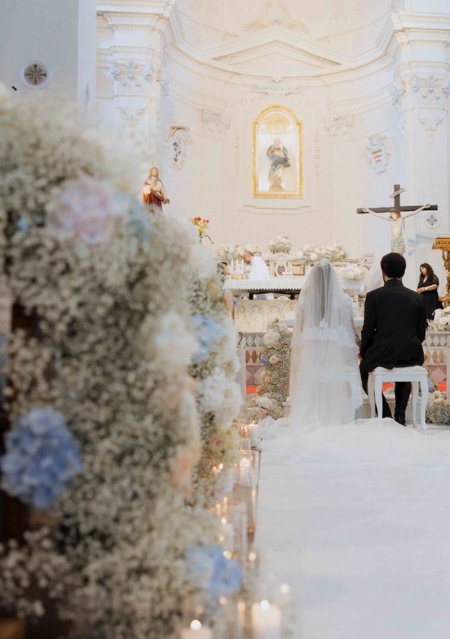 Ravello, considerata una delle gemme più preziose della Costiera Amalfitana, è stata lo scenario della magica favola di Chiara ed Emiliano. I due sposi hanno scelto l Wedding Planner, specializzato in Destination Wedding, Stefano Miranda l’organizzazione del loro giorno più bello. La giornata è iniziata con la celebrazione di un rito religioso nel suggestivo Duomo di Ravello, impreziosito da un tripudio floreale di gypsophila e ortensie turchesi che hanno avvolto la chiesa in un’atmosfera eterea e delicata. Per il ricevimento, gli sposi hanno scelto la raffinata Villa Eva, elegante dimora in stile liberty affacciata sul panorama della Costiera. Nella sala interna, due grandi tavoli imperiali hanno accolto gli ospiti in una scenografia luminosa composta da centinaia di candele e composizioni floreali, creando un ambiente intimo e prezioso. Una festa sospesa tra cielo e mare, capace di raccontare tutta la magia di Ravello in chiave luxury.