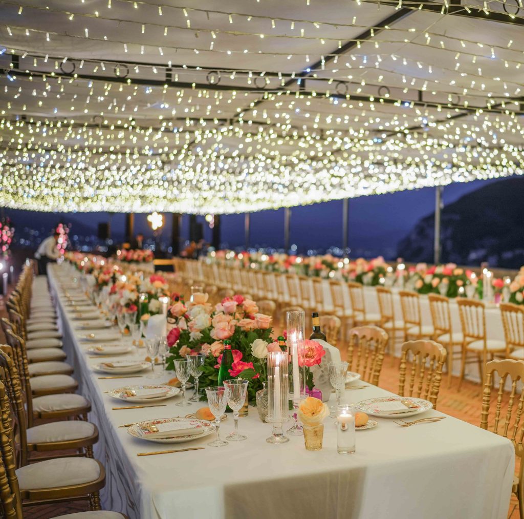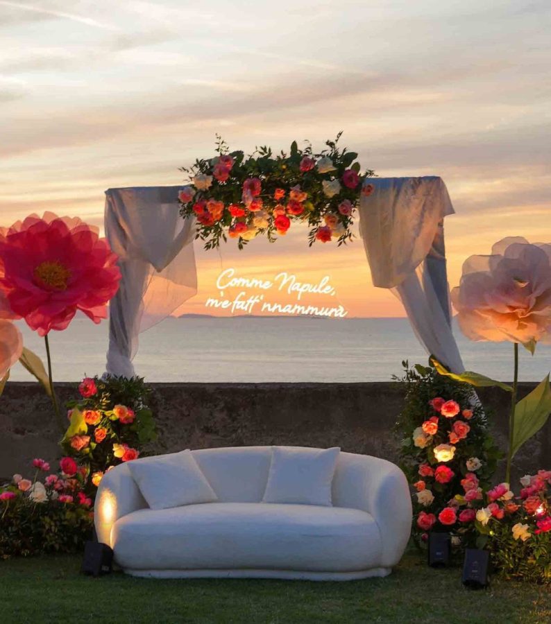 Fabio e Raffaella hanno celebrato il loro amore lo scorso settembre, tra la solennità della Basilica della Madonna di Pozzano, a Castellammare di Stabia, e il fascino sospeso sul mare del Castello Giusso, a Vico Equense scegliendo l’agenzia del Wedding Planner Stefano Miranda per l’organizzazione delle nozze. Una coppia solare, travolgente, che ha voluto imprimere al proprio giorno colori forti e decisi, a partire dall’ingresso della basilica, incorniciato da composizioni floreali scenografiche. Dopo la cerimonia, gli ospiti si sono spostati sulla terrazza del castello, affacciata sul mare con vista sul Vesuvio, dove due tavoli imperiali hanno accolto la cena sotto un cielo stellato. Al tramonto, un suggestivo Photobooth incorniciato da fiori giganti ha fatto da sfondo agli scatti degli invitati, mentre la festa, vivace e luminosa, è proseguita fino a notte fonda tra giochi di luce e atmosfere dal forte impatto visivo.