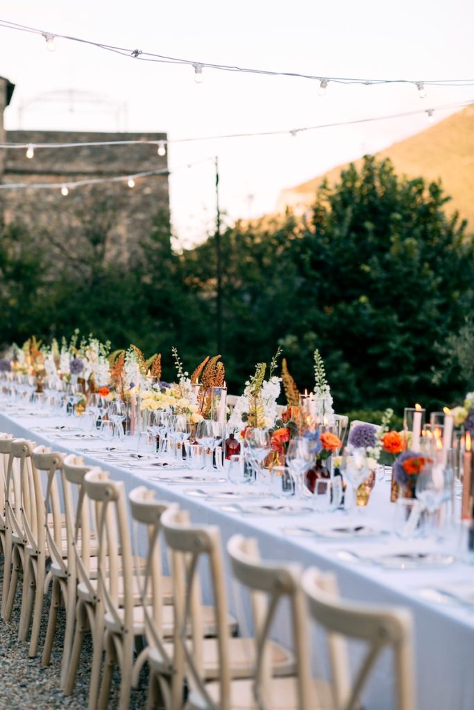 Ivana e Stefan, sposi uniti dalla passione per i viaggi e le due ruote, hanno scelto la Liguria per coronare il loro sogno d’amore, affidandosi alla sensibilità creativa della Wedding Planner Valeria Fazio. A fare da sfondo al loro Sì è stato Colletta di Castelbianco, uno dei “Borghi più belli d’Italia”, un intreccio di pietra e silenzi incastonato tra le Alpi Marittime. La cerimonia, celebrata con un antico rito celtico, si è trasformata in un momento carico di emozione e simbolismo reso ancora più intenso dal panorama verde che avvolge il borgo. Per l’allestimento, Valeria Fazio ha alternato nuance vivaci tra viola e verde, gigli arancioni scenografici e tocchi grafici contemporanei, in un raffinato incontro tra suggestioni fiabesche e dettagli pop. Dopo la cena, il party è esploso tra musica e un chiosco di gelati in perfetto Italian Style.