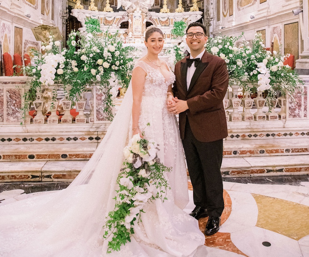 Isabella, di origini libanesi e con un profondo legame familiare con la Liguria, e Sal, messicano, hanno scelto Santa Margherita Ligure come scenario ideale per il loro Sì orchestrato dal Wedding Creator Mariano Minetto. Per accogliere amici e parenti arrivati da ogni parte del mondo, Hotel Imperiale è sembrata la venue ideale: una dimora affacciata sul mare, dove il lusso si rivede nella luce naturale, nelle proporzioni armoniche e in un servizio impeccabile. La cerimonia religiosa si è svolta nel Santuario di Nostra Signora della Rosa, reso ancora più prezioso da un allestimento floreale di grande impatto caratterizzato da composizioni architettonica di orchidee in tonalità sofisticate, in perfetta sintonia con gli affreschi e la sacralità dello spazio. Il loro matrimonio si è distinto per uno stile cosmopolita e raffinato, in cui culture, memorie e design si sono fusi in un racconto di bellezza e classe.