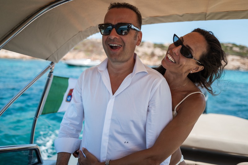 Luca e Valentina, entrambi marchigiani, hanno iniziato la loro storia d’amore proprio in Sardegna, tra uscite in barca e amicizie condivise.