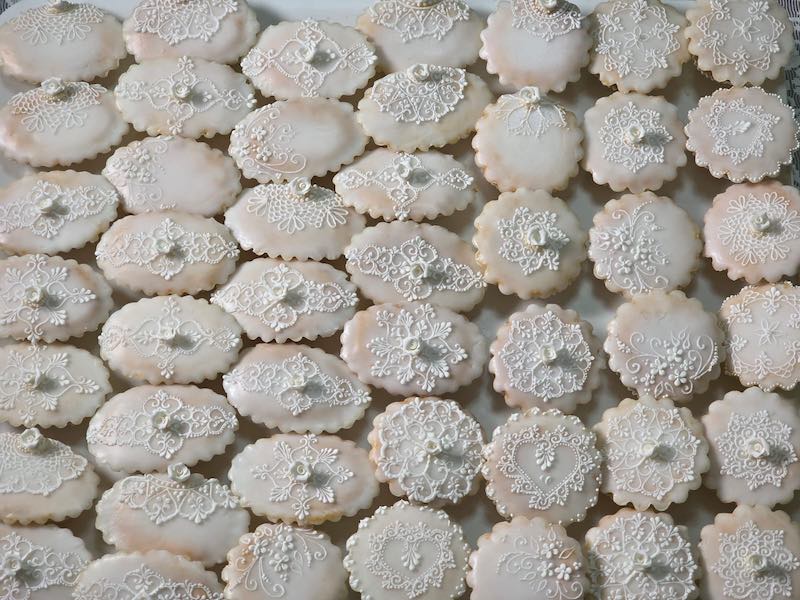Come segnaposto, le Pastine Reali (Is Pastissus), dolci sardi alle mandorle decorati a mano da Rita Cardia, hanno portato in tavola un frammento gourmet di cultura gallurese.