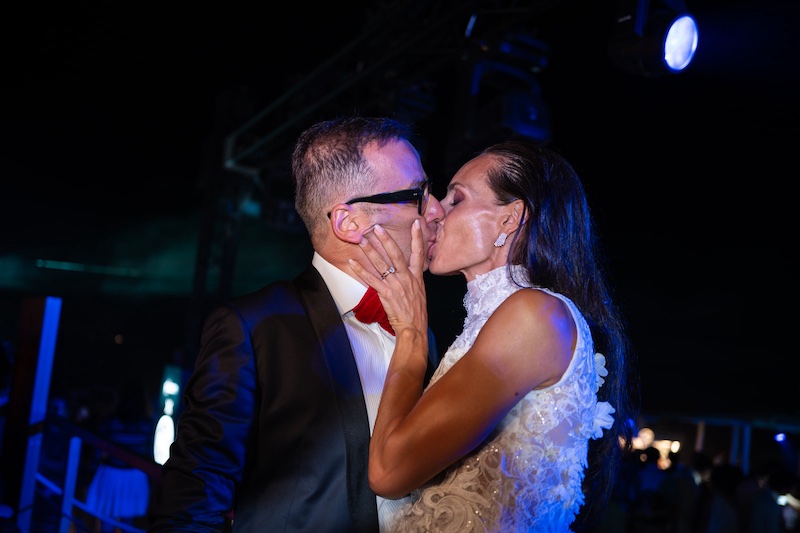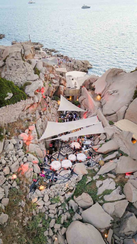 Subito dopo, il ricevimento si è acceso nell’area esclusiva Don Julio del Phi Beach, con il DJ internazionale Argy a guidare la notte tra sonorità melodic techno, luci e video mapping sulle rocce.