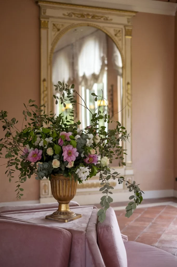 Lusso ed eleganza si ritrovano nelle stanze affrescate, nella piscina all’aperto che fa capolino tra tassi e lecci secolari, nei saloni ricchi di fasti e decori barocchi, nel giardino che vanta oltre 100 tipologie di rose. E ritornano anche nei matrimoni.