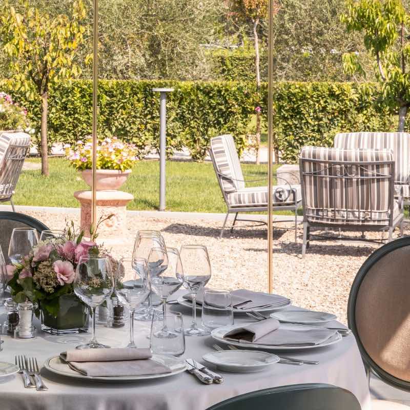 Infiniti gli spazi destinati ai grandi eventi, dalla terrazza panoramica alla sala da ballo alla sala banchetti all’interno della villa settecentesca. E poi c’è il ristorante stellato e, ancora, l’antica chiesa romanica del borgo dove celebrare cerimonie ad alto tasso di romanticismo.