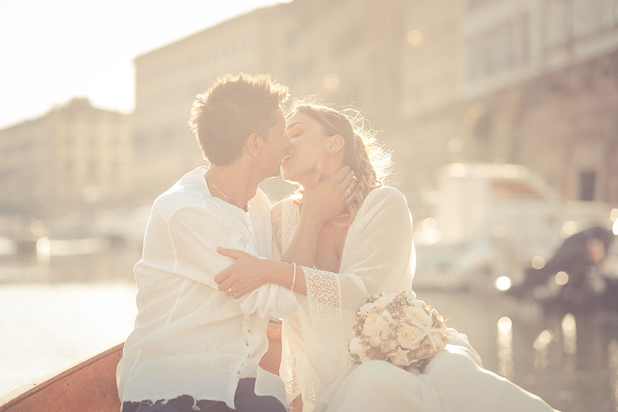 Così, dopo la cerimonia civile pomeridiana, hanno preso vita gli scatti artistici del fotografo livornese. Con i colori magici del tramonto ed i suggestivi giochi di luci dorati dell’acqua, Diego Giusti ha trasformato in realtà il sogno di Gessica e Nazzareno scattando incantevoli foto sul tipico gozzo in legno livornese e sullo sfondo una delle strutture storiche di Castiglioncello: l’ex Vittoriale di Gabriele D’Annunzio.