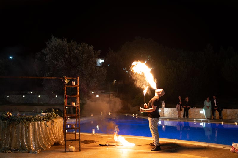 Il taglio della torta è magico con lo spettacolo del fuoco