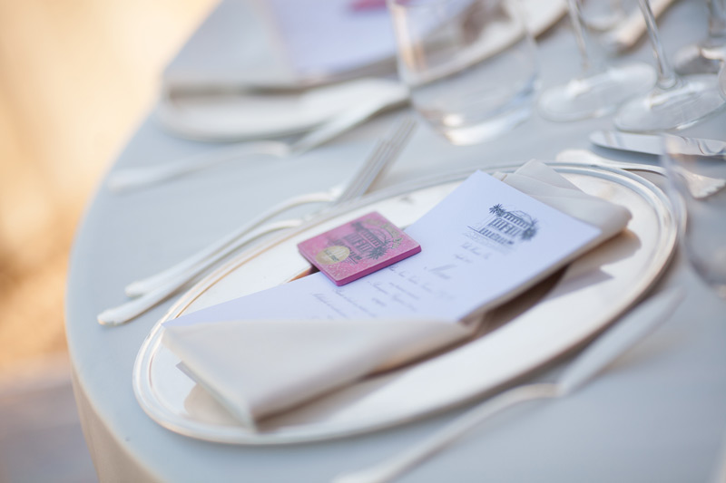 I segnaposti sono delle fiches che sono state regalate a ciascun ospite in ricordo della giornata, c’è il tableau de mariage a tema e anche la festa post- cena è stata tutta un susseguirsi di giocate alla Roulette e a Black Jack. I premi per gli ospiti più fortunati al gioco? Delle bottiglie di champagne. Il Casinò è stato allestito per l’occasione all’interno della struttura storica.