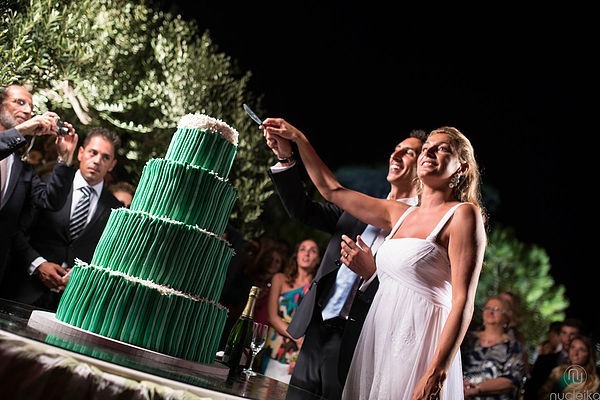 Dopo la chiesa, dunque, i profumi del giardino siciliano hanno lasciato spazio allo scintillio delle candele sul mare: «Per gli invitati – aggiunge Lucina Campisi – una passeggiata sul prato dei giardini della villa, fra ulivi e carrubi, alla scoperta di mille bancarelle di alta cucina siciliana e fino alla grande terrazza sul mare, da cui si scorgeva la spiaggia privata». Nessun tavolo, nessuna sedia, niente tableau de mariage né bomboniere. Solo grandissime isole-salotto, gazebo e open bar. Con un dettaglio che ha lasciato senza fiato i 400 invitati: un lunghissimo tavolo specchiato, illuminato da oltre 1500 candele.