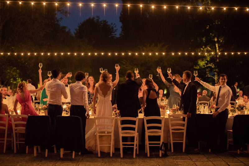 Se il banchetto di nozze è stato allestito dalla Wedding Planner Silvia Baldan di Maison Mariage all’aperto, nella grande aia della struttura storica, la festa da ballo si trasferisce sotto l’ampia barchessa. A rendere l’atmosfera più intima e romantica ci sono tante candele e giochi di luce colorata.