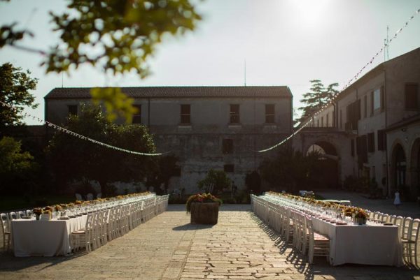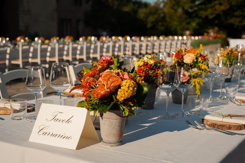 Le piantine aromatiche diventano segnaposti profumati. Anche la mise en place è molto elegante nella sua semplicità. E’ la natura infatti il tema delle nozze di Giorgia e Riccardo organizzate dalla Wedding Planner Silvia Baldan di Maison Mariage. I colori principi di tutto l’ensemble sono il giallo e l’arancio in tutte le loro delicate sfumature. “In questo evento per le decorazioni floreali abbiamo scelto i toni settembrini del giallo e dell’arancio; ogni dettaglio è stato pensato per ricreare un’atmosfera elegante ma allo stesso tempo informale“, racconta Silvia Baldan di Maison Mariage.