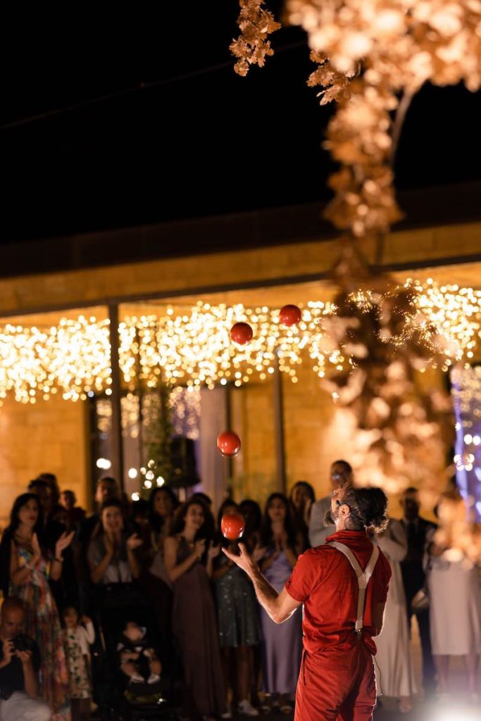Giocolieri, funamboli e mangiatori di fuoco hanno affascinato gli invitati con le loro acrobazie da togliere il fiato.