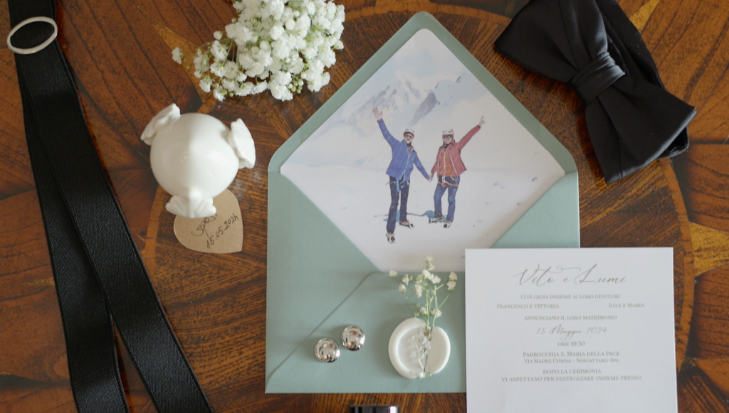Un invito che racconta una storia: la stationery personalizzata da Carmen Renna per il matrimonio di Vito e Lumi