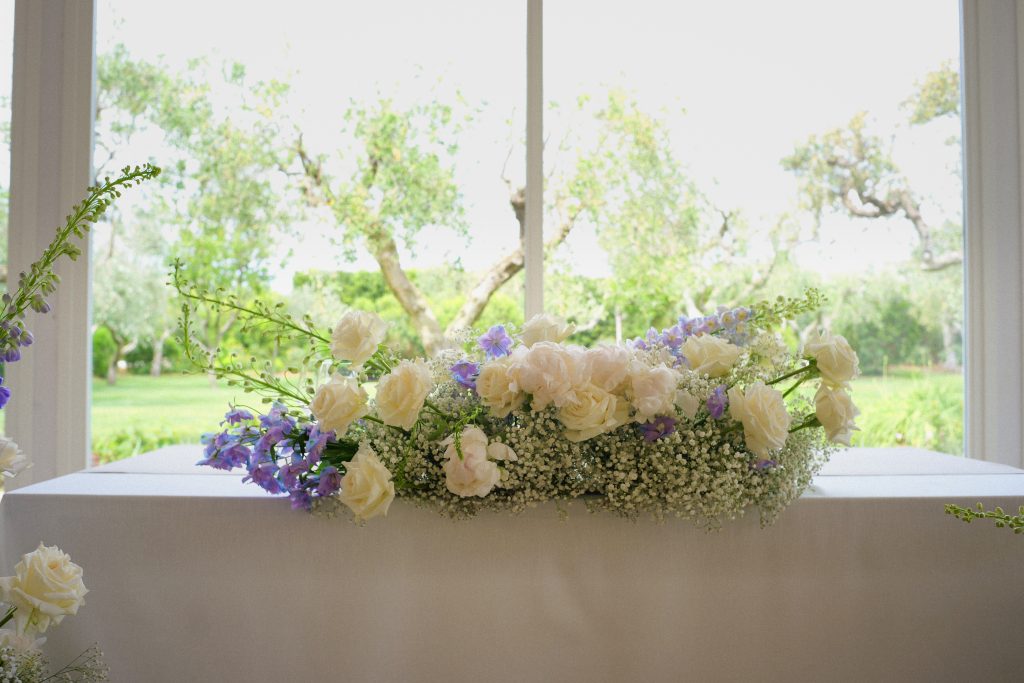 Gli allestimenti floreali seguono la stessa linea del progetto: composizioni leggere, naturali, mai invadenti decorano con eleganza gli spazi, mentre piccoli dettagli, posizionati strategicamente nella location, raccontano una storia coerente dall’inizio alla fine.