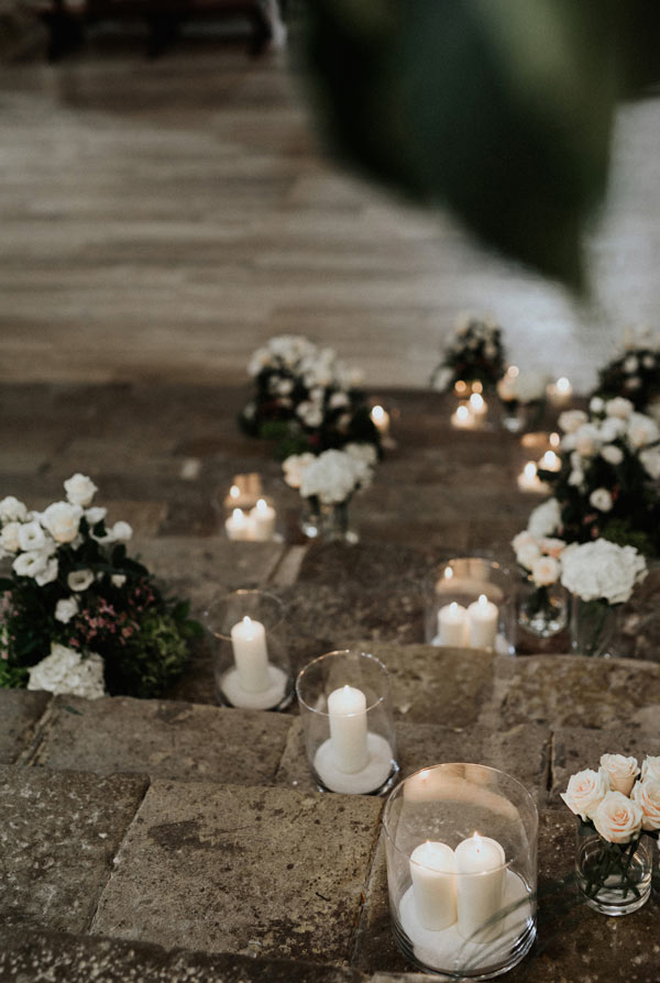 Giochi di luci per l’enorme scalinata e la navata dell’Abbazia di San Giovanni in Venere Fossacesia, “illuminate” da numerose candele per arricchire e scaldare l’atmosfera.